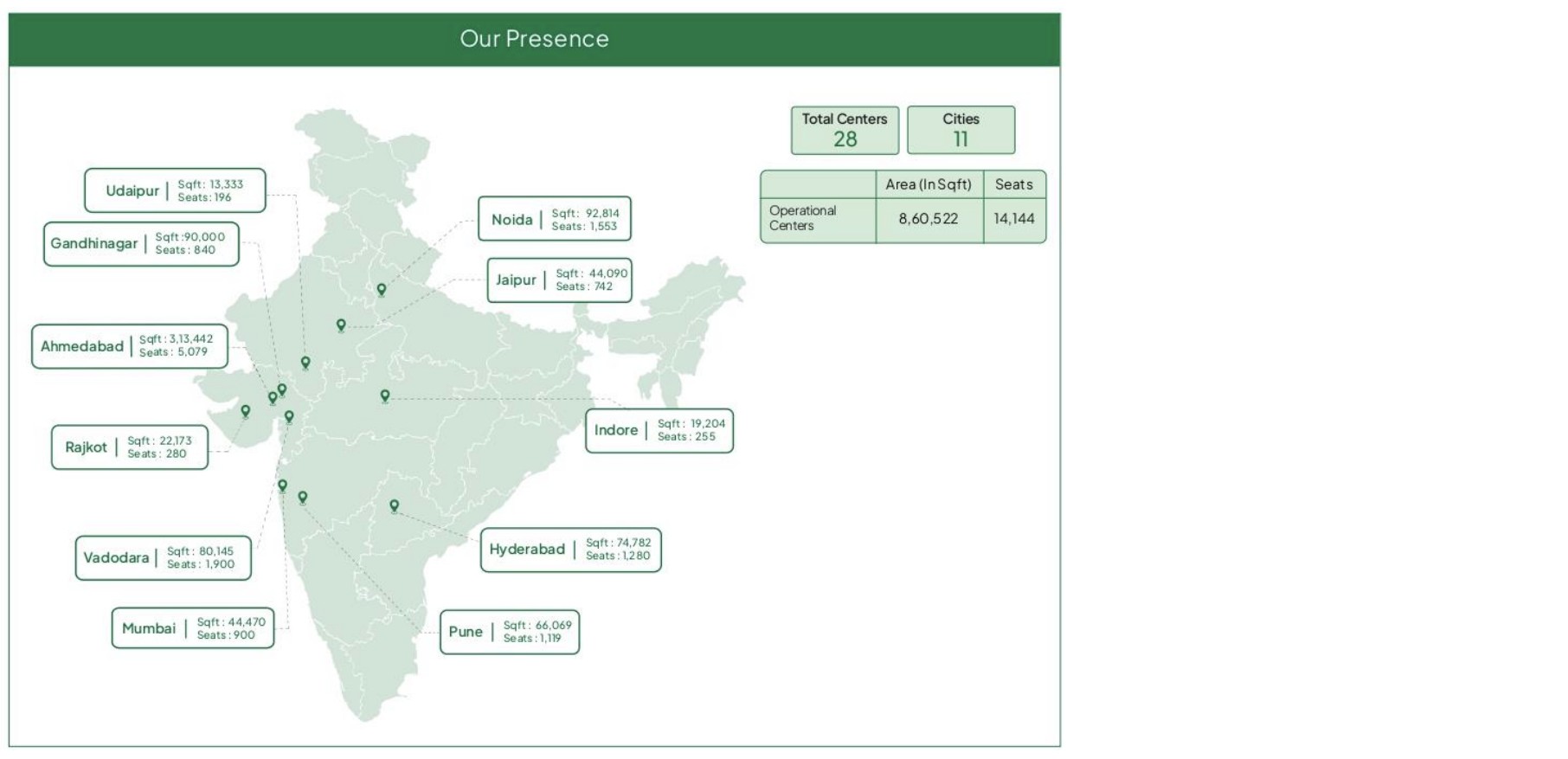 The company’s operations cover major Tier 1 markets (Delhi NCR, Hyderabad, Mumbai, and Pune) and crucial Tier 2 growth markets (Ahmedabad/Gandhinagar, Indore, Jaipur, Udaipur, and Vadodara).